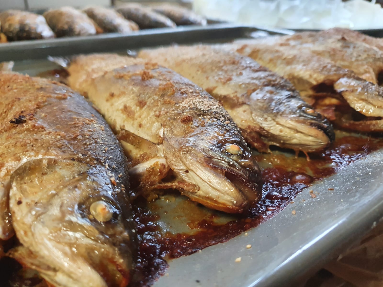 Ganze Forelle mit Kräutern gefüllt
